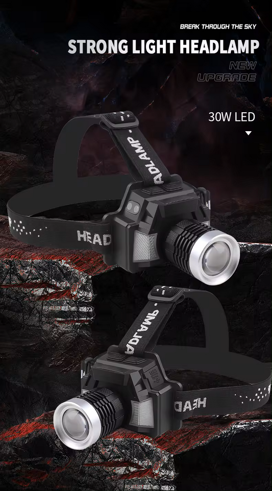 Foco de Cabeza LED súper brillantes de 30W, recargable, resistente al agua. 1000 lumines